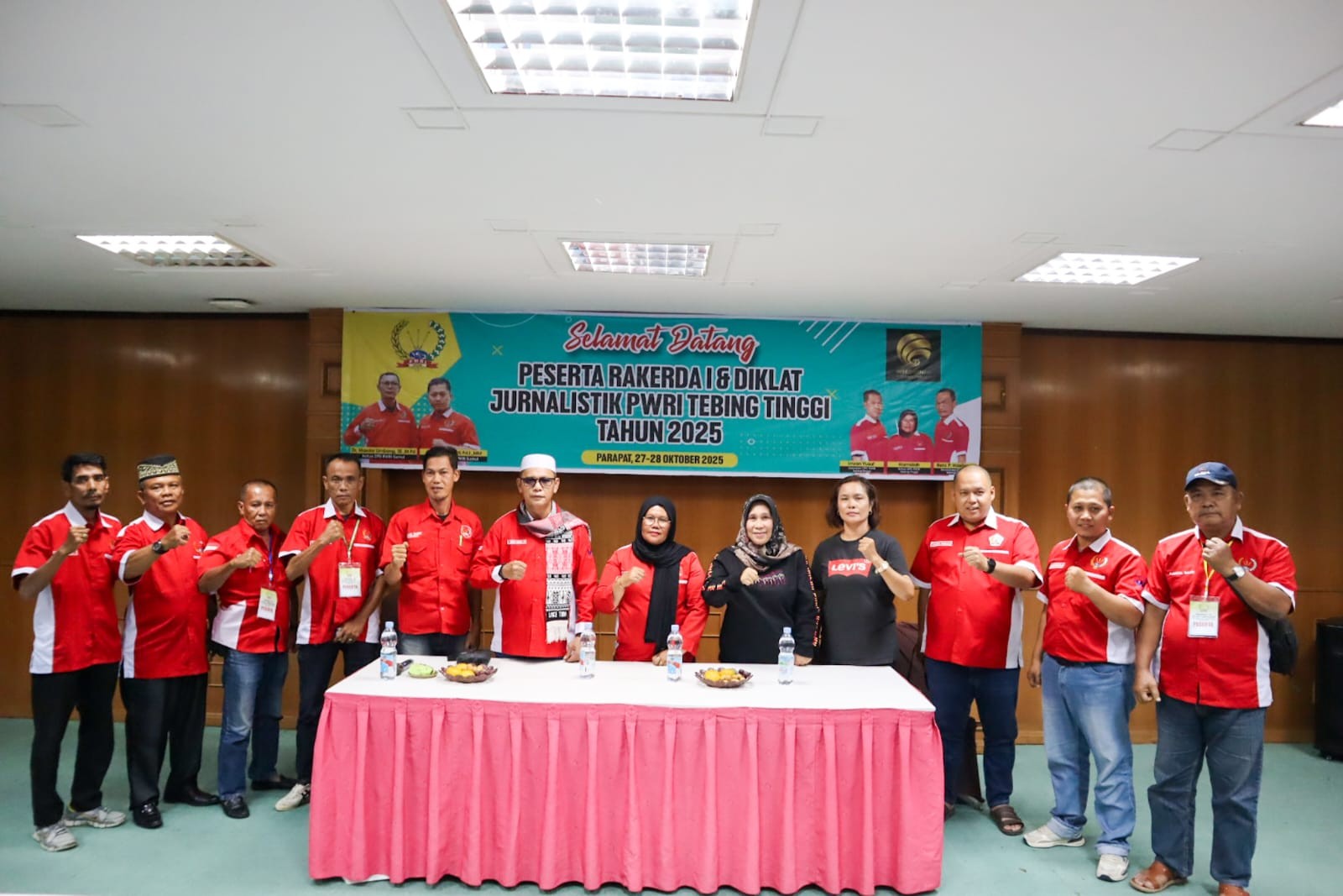 Pelaksana Tugas (Plt.) Kepala Dinas Komunikasi dan Informatika (Kominfo) Kota Tebing Tinggi, Ernawati Lubis, menghadiri Rapat Kerja Daerah I (RAKERDA) sekaligus Pendidikan dan Pelatihan (Diklat) Jurnalistik yang digelar Dewan Pimpinan Cabang Persatuan Wartawan Republik Indonesia (DPC PWRI) Kota Tebing Tinggi, di Siantar Hotel Parapat, Senin (27/10/2025).