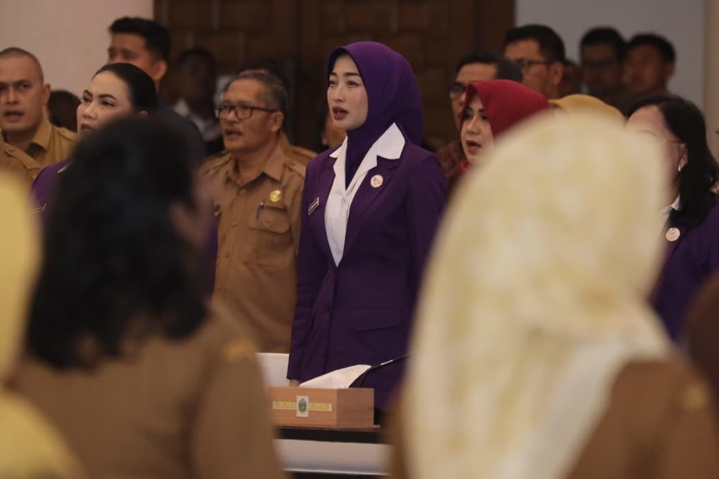 Ketua Tim Penggerak Pemberdayaan Kesejahteraan Keluarga (TP PKK) sekaligus Ketua Tim Pembina Pos Pelayanan Terpadu (Posyandu) Kota Tebing Tinggi, Ny. Hj. Susmira Wanti Iman Irdian Saragih, mengikuti Rapat Koordinasi Daerah (Rakorda) Tim Pembina Posyandu Sumatera Utara (Sumut) di Aula Raja Inal Siregar, Kantor Gubernur Sumut, Medan, Senin (24/11/2025).
