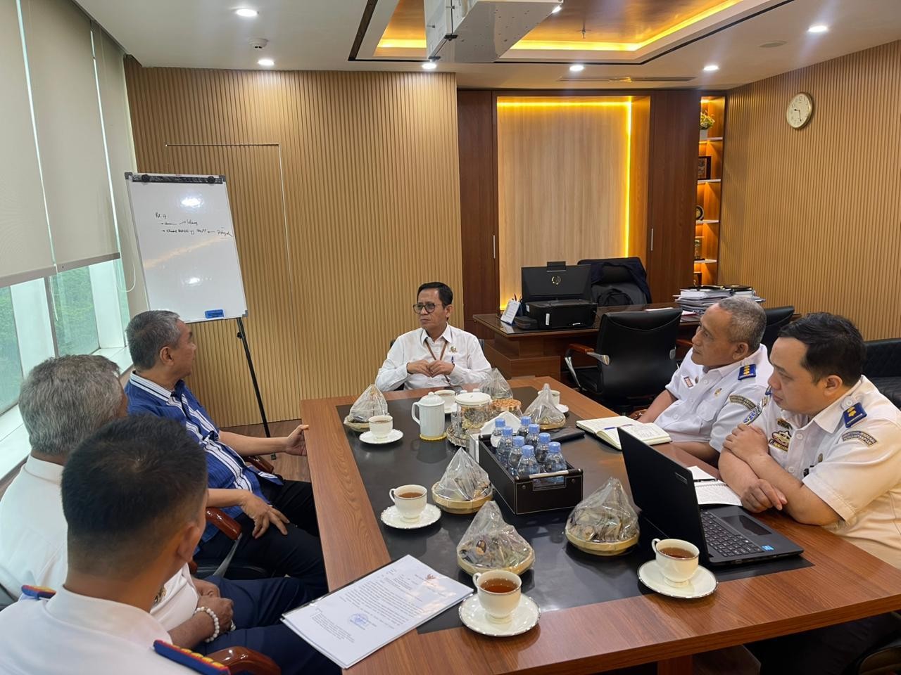 Kedatangan rombongan Pemko Tebing Tinggi disambut hangat oleh Direktur Keselamatan Perkeretaapian, Jumardi di ruang kerjanya, didampingi Kasubdit Rekayasa dan Peningkatan Keselamatan, Danan Widhonarko, serta Inspektur Prasarana Perkeretaapian, Yayat Hendayana.