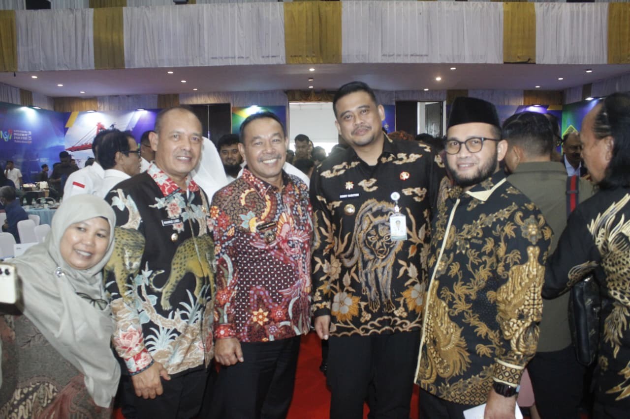 Wakil Wali Kota Tebing Tinggi, H. Chairil Mukmin Tambunan, didampingi Sekretaris Dinas Tenaga Kerja (Disnaker) Fahmudin Siregar, menghadiri acara North Sumatera Investment Industry Trade & Halal Expo 2025 yang diselenggarakan oleh Kamar Dagang dan Industri (KADIN) Sumatera Utara (Sumut) di Aula Pekan Raya Sumatera Utara (PRSU), Tapian Daya, Jalan Gatot Subroto Medan, Senin (13/10/2025).